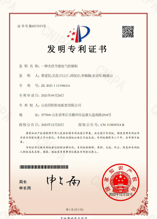 山東國恒機電配套有限公司簡 介 山東國恒機電配套有限公司是一家集新能源、高科技、智能化生產(chǎn)研發(fā)、制造、銷售為一體的綜合性現(xiàn)代化高新技術(shù)企業(yè),公司座落在魯班故里、墨子之鄉(xiāng)滕州,公司始建于2005年,注冊資本1億元,擁有各類中、高級專業(yè)技術(shù)人員100余名。主營業(yè)務涉及高科技智能電力裝備、新能源儲備輸送,220kv及以下輸變電工程勘察設(shè)計、制造、銷售、安裝、售電和智能充電樁能效運維,并從事生產(chǎn)制造交直流充電樁設(shè)備、成套開關(guān)設(shè)備、各型號高低壓開關(guān)柜、箱式變電站等電氣設(shè)備,是棗莊地區(qū)唯一一家國資入股的新能源高端品牌企業(yè)。公司擁有獨立…